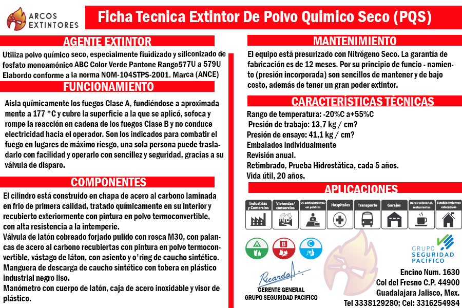 Fabricado bajo los más altos estándares de calidad y cumpliendo la NOM-154-SCFI-2005, este equipo garantiza un desempeño seguro, rápido y confiable en situaciones críticas. Su cuerpo resistente, válvula de alta durabilidad y agente químico de rápida acción lo convierten en un elemento imprescindible para cualquier programa de seguridad.